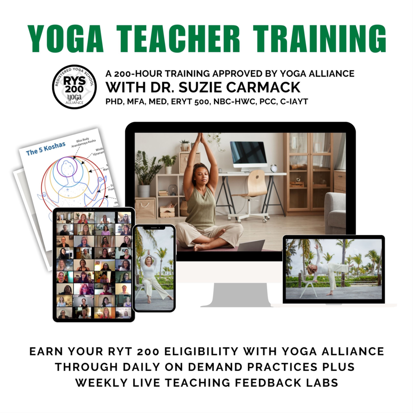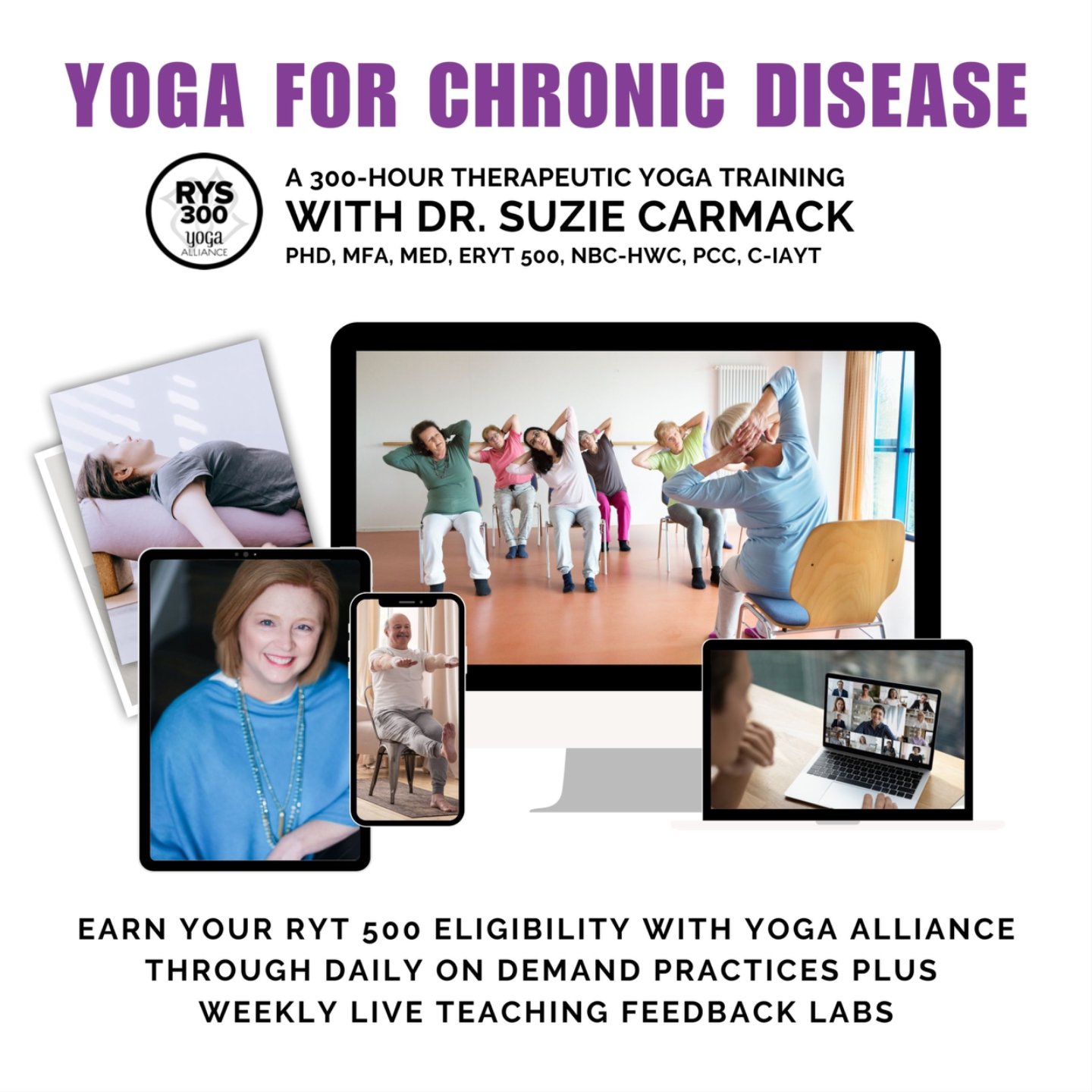Learn yoga-for-ONE: teaching individuals, adapting for every body, bringing yoga into workplaces. Enroll now and start now, then enjoy 8 weeks of live mentorship with Dr. Suzie in live teaching labs
