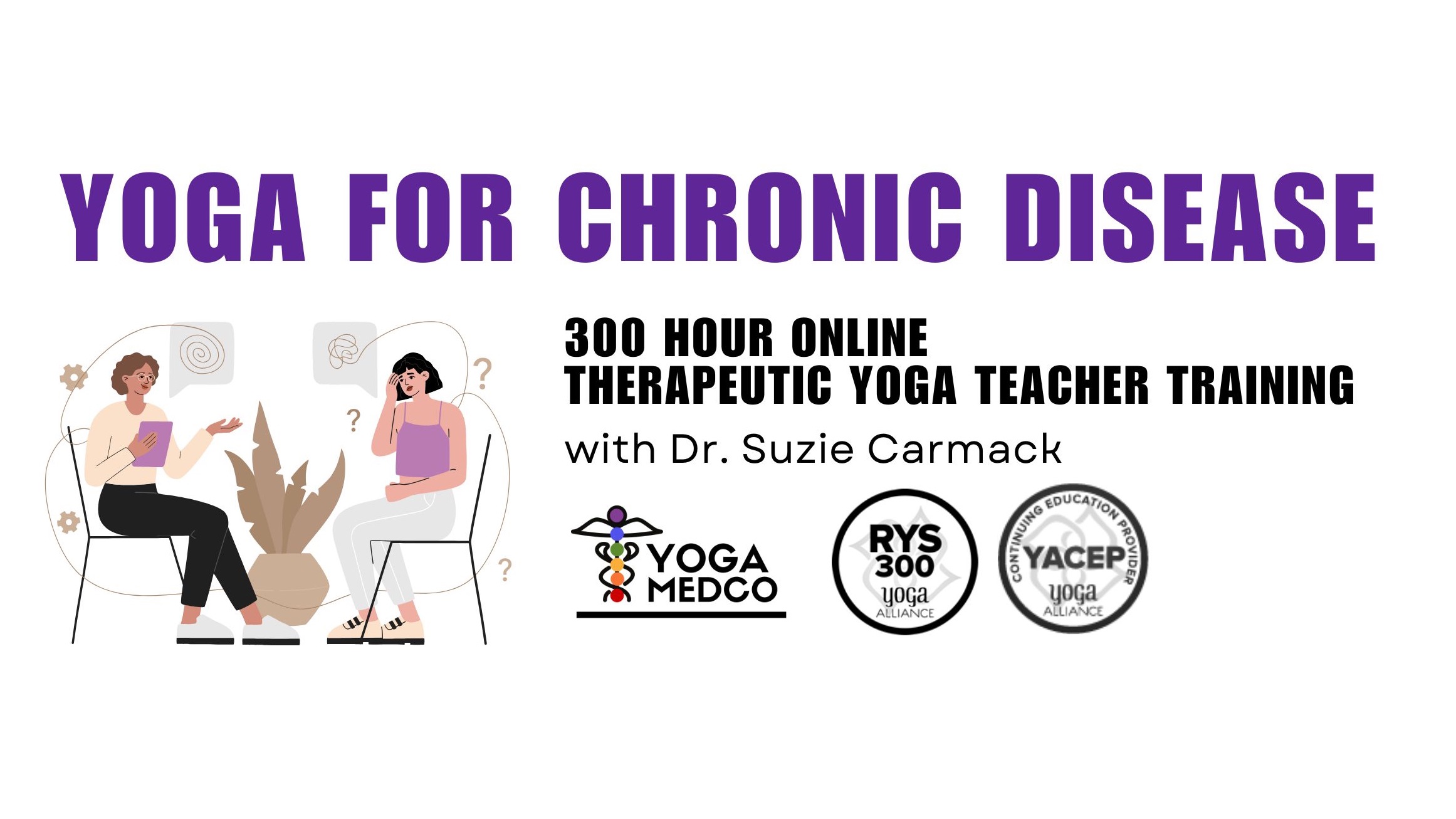 Are you ready to deepen your understanding of how you can teach yoga to individuals experiencing chronic disease? Then enroll today in our convenient online program with Dr. Suzie Carmack, founder of YogaMedCo. She has over 20 years of experience training yoga teachers, and is the author of Yoga for One.